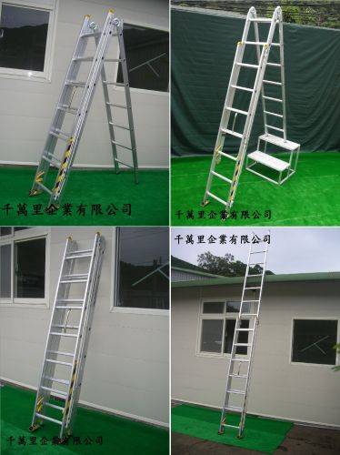是結合折梯、伸縮梯和可調式伸縮梯的多功能工程梯。